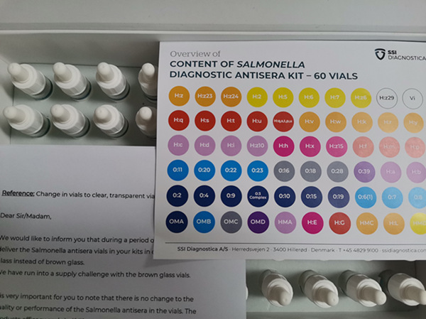 沙門(mén)氏菌診斷血清是通過(guò)玻片凝集法將培養(yǎng)好的細(xì)菌進(jìn)行分型,確認(rèn)是哪些分型的沙門(mén)氏菌。