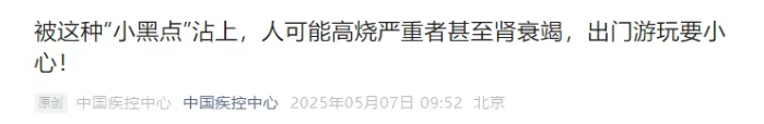 被這種“小黑點”沾上,嚴(yán)重可致死!中疾控緊急提醒→