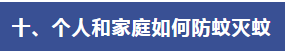 (一)個(gè)人防護(hù)。疫點(diǎn)周邊或蚊蟲活躍區(qū)域,居民應(yīng)做好個(gè)人防護(hù),出門穿著淺色長袖衣褲減少皮膚暴露,必要時(shí)使用驅(qū)蚊液、驅(qū)蚊貼等產(chǎn)品。室內(nèi)可安裝紗門紗窗,夜間睡眠時(shí)使用蚊帳。