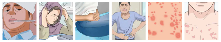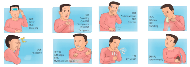 媒介伊蚊叮咬患者或隱性感染者后,通過叮咬傳播給其他人。潛伏期為1~14天,多為4~7天。臨床癥狀表現(xiàn)為發(fā)熱(可持續(xù)2~7天),劇烈頭痛、肌痛、關(guān)節(jié)痛、眼眶痛、食欲減退、惡心、嘔吐和皮疹,嚴(yán)重時可發(fā)展為重癥登革熱,出現(xiàn)出血、休克等危險(xiǎn)情況。