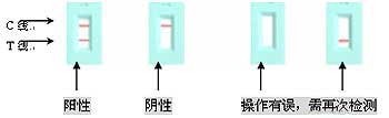 陽(yáng)性:判定部(T)及判定部(C)雙方都確認(rèn)出現(xiàn)紫紅色條帶。
